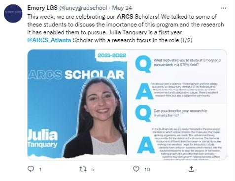 Did you know that the ARCS Atlanta Twitter feed can be seen right on our chapter website home page? Look in the lower right portion of the page and scroll through recent posts for more insight into the lives and work of ARCS Atlanta Scholars.